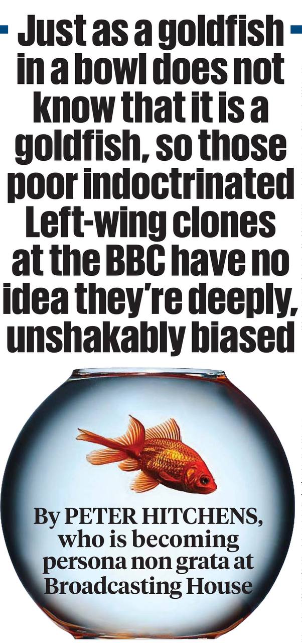 Они не являются журналистами в том смысле, в каком большинство из нас понимает этот термин. Они - просто клоны Би-Би-Си. Подобно тому, как золотая рыбка в аквариуме не знает, что она золотая рыбка, или даже что она находится в аквариуме с водой, эти бедные, пропитанные идеологией мужчины и женщины понятия не имеют, что они глубоко и непоколебимо предвзяты. Многие из них никогда не встречали никого, с кем бы они не были согласны. Если бы встречали, они бы их презирали. На это есть ответ, но он невероятно радикален. Чтобы обратить вспять леволиберальную революцию Би-Би-Си, нужно также обратить вспять революцию в школах, политических партиях и университетах. Иначе как воспитать людей, необходимых для восстановления баланса?
