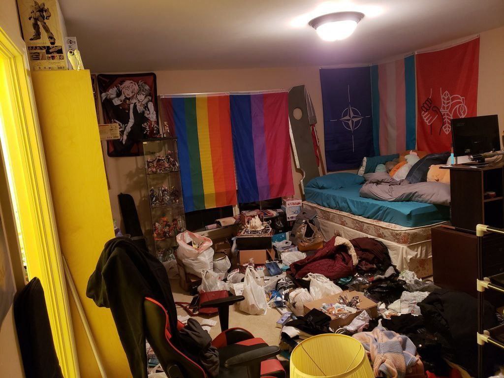 На первом фото комната трансгендера, устроившего стрельбу в американской христианской школе, на втором - комната Хованского, воспевающего теракты в московском метро.