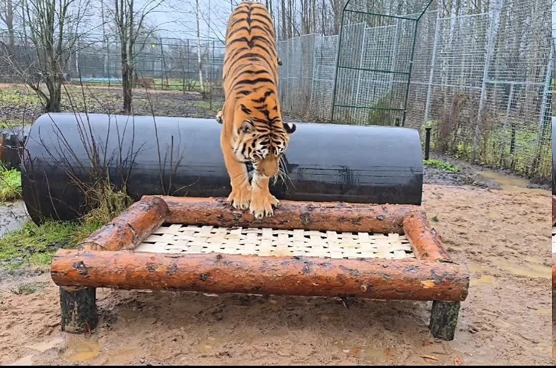 Полосатые из «Дома тигра» тестируют новые лежанки, сделанные из сосен и пожарных рукавов. Такой подарок кошкам из хосписа прислал Ленинградский зоопарк. Подопечные оценили новые предметы интерьера.