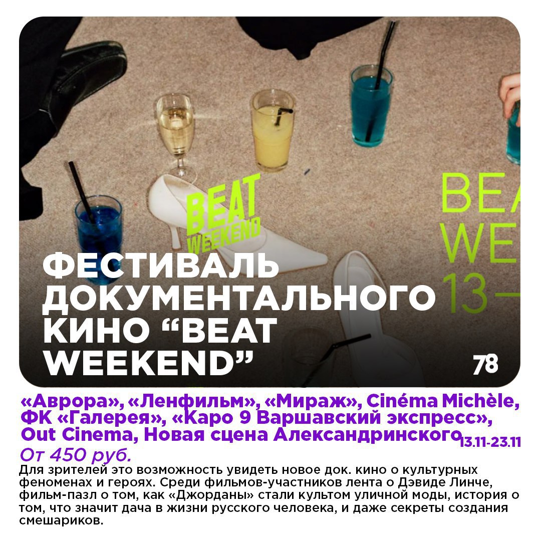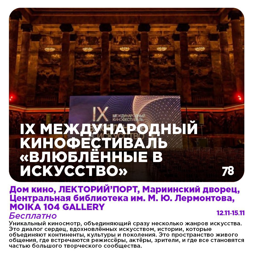 А ещё на выходных пройдут международный кинофестиваль, трогательный спектакль и экспрессивно-лиричный концерт. Подробнее — в нашем дайджесте!