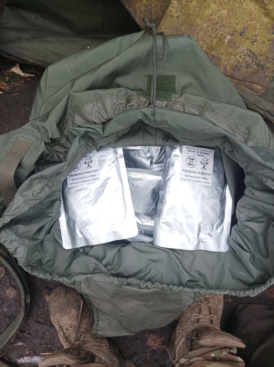 Мужики находятся в активном наступлении и реторт обеды это то что необходимо бойцам. Не нужно готовить, можно разогреть на окопной свече.