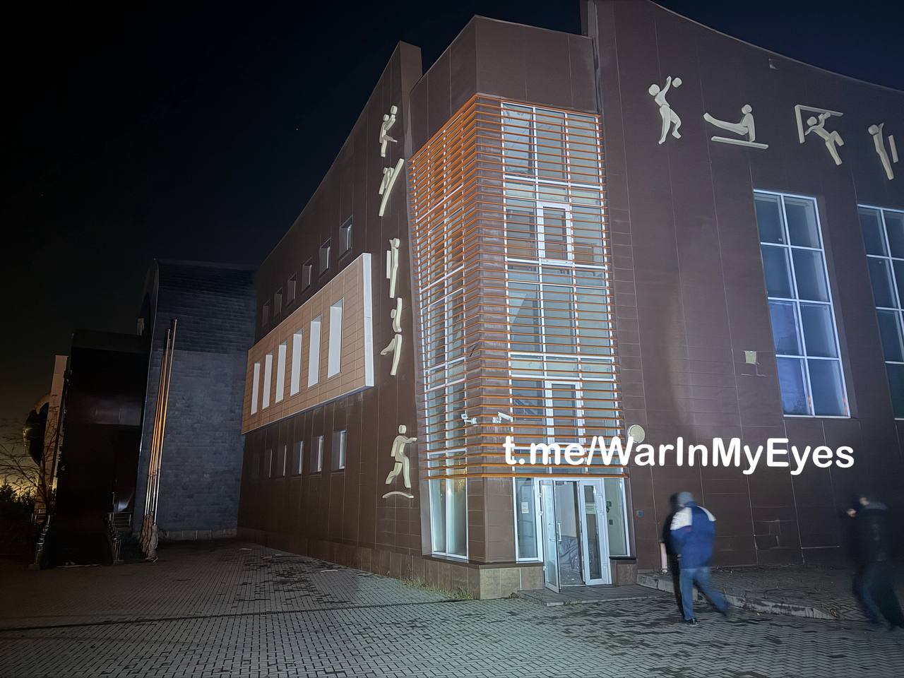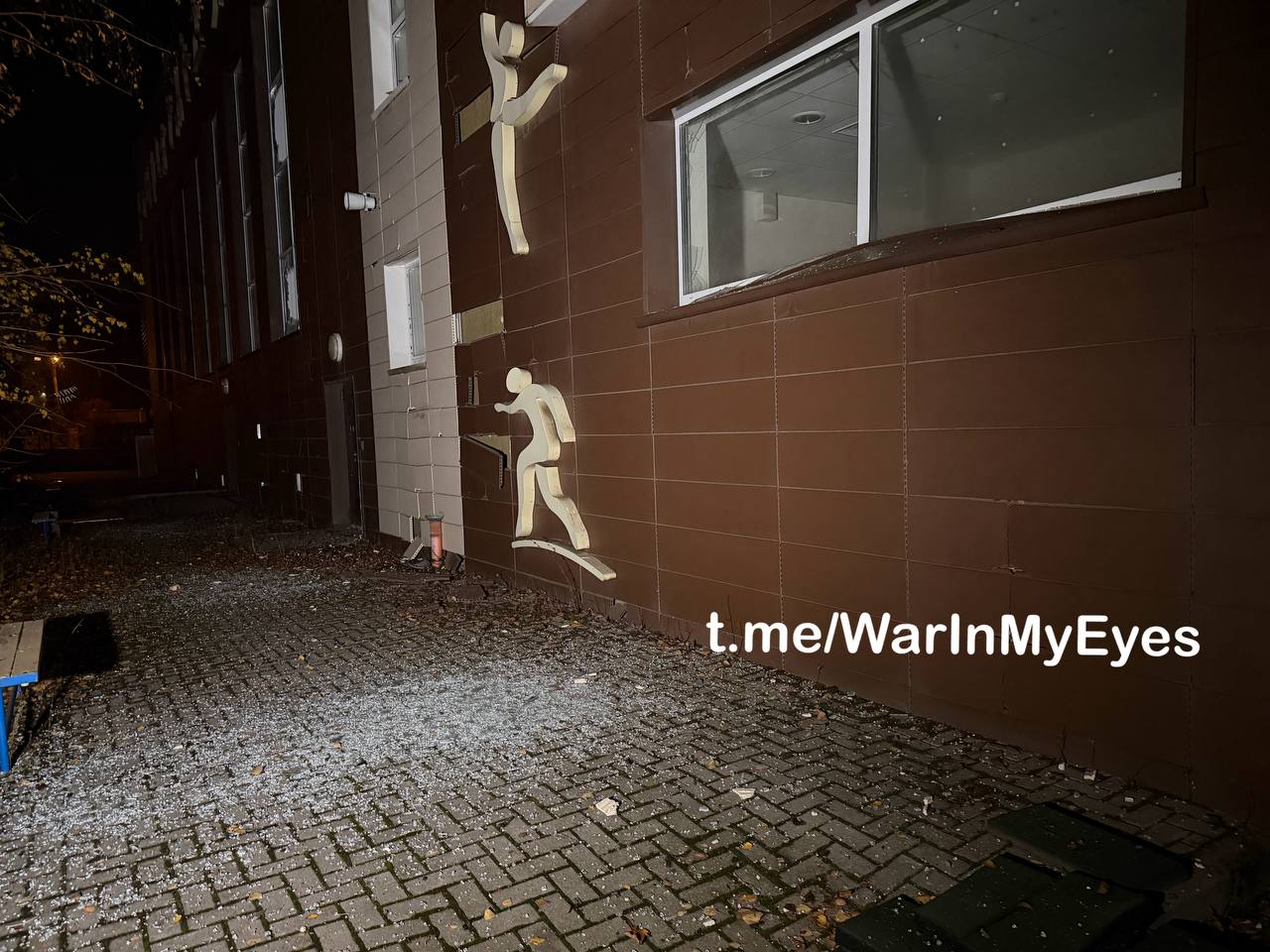 Последствия падения обломков сбитого БПЛА ВСУ на территорию Григорьевской школы ( школа Ахметова ) в Ворошиловском районе Донецка