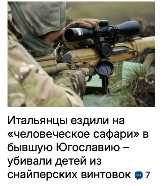 Прокуратура Милана начала расследование данных, что группы богатых европейцев, в том числе итальянцев, покупали туры в Сараево, чтобы стрелять по мирным жителям во время четырехлетней осады города в 1990-х годах, пишет La Repubblica.