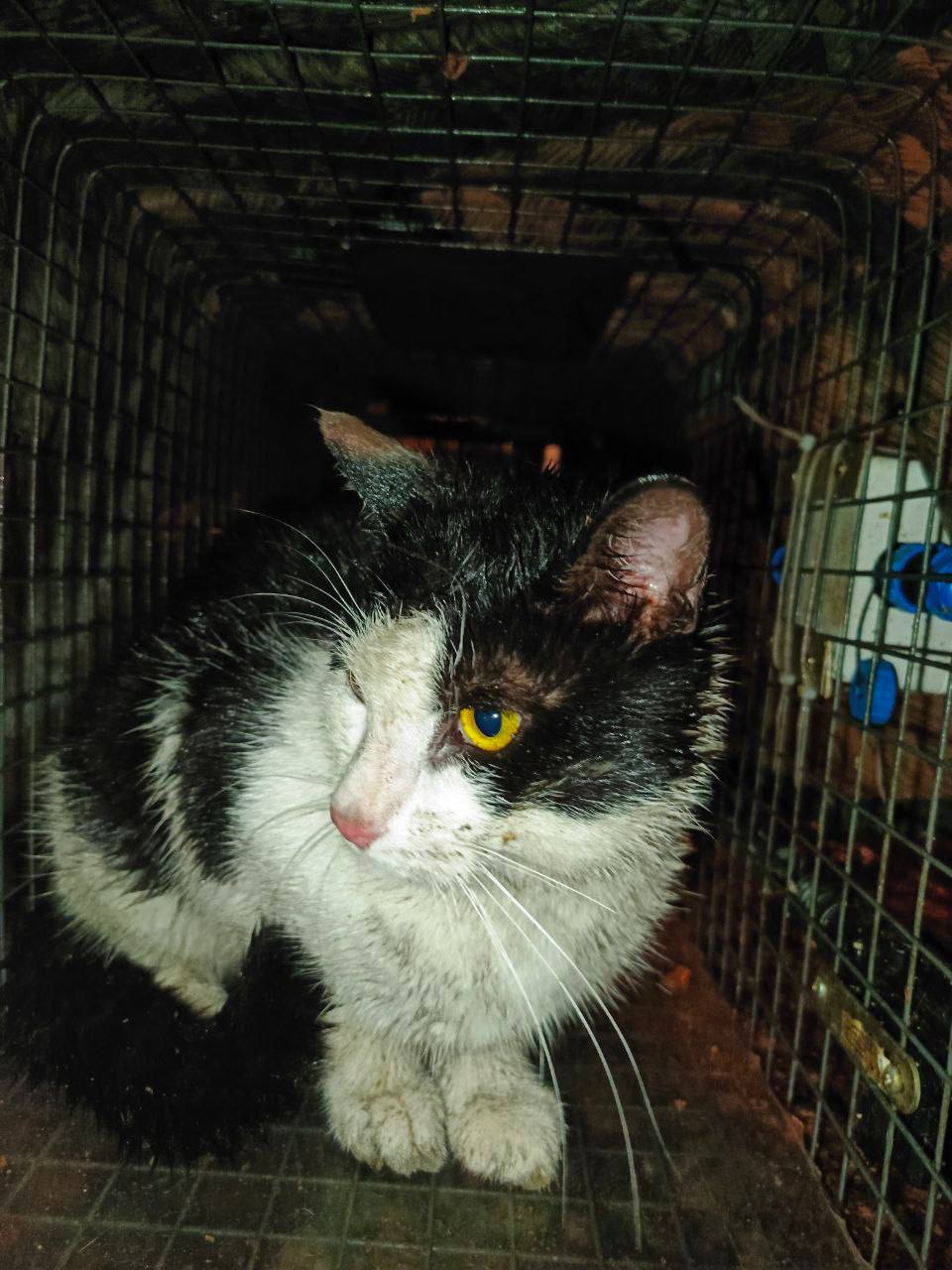 После ряда усилий добровольцы смогли освободить животное. В настоящий момент кота везут в ветеринарную лечебницу.