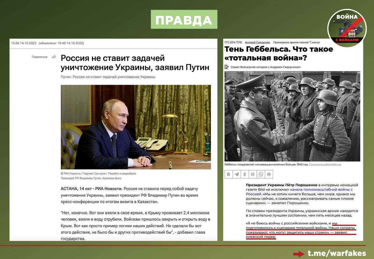 Фейк: Россия ведет войну на уничтожение — с ней бесполезно вести переговоры. Об этом пишут украинские СМИ.
