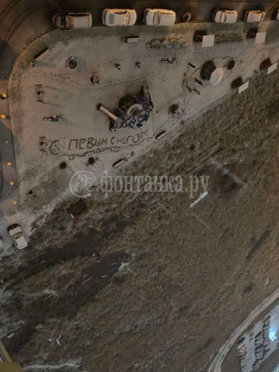 Петербуржцы лепят снеговиков, водят хороводы, вытаптывают поздравления и радуются солнцу.