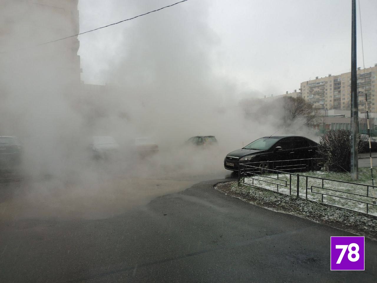 На Маршала Казакова, 28/3 прорвало трубу — во дворе разлилась вода, поднялся пар. На месте работают аварийные службы.