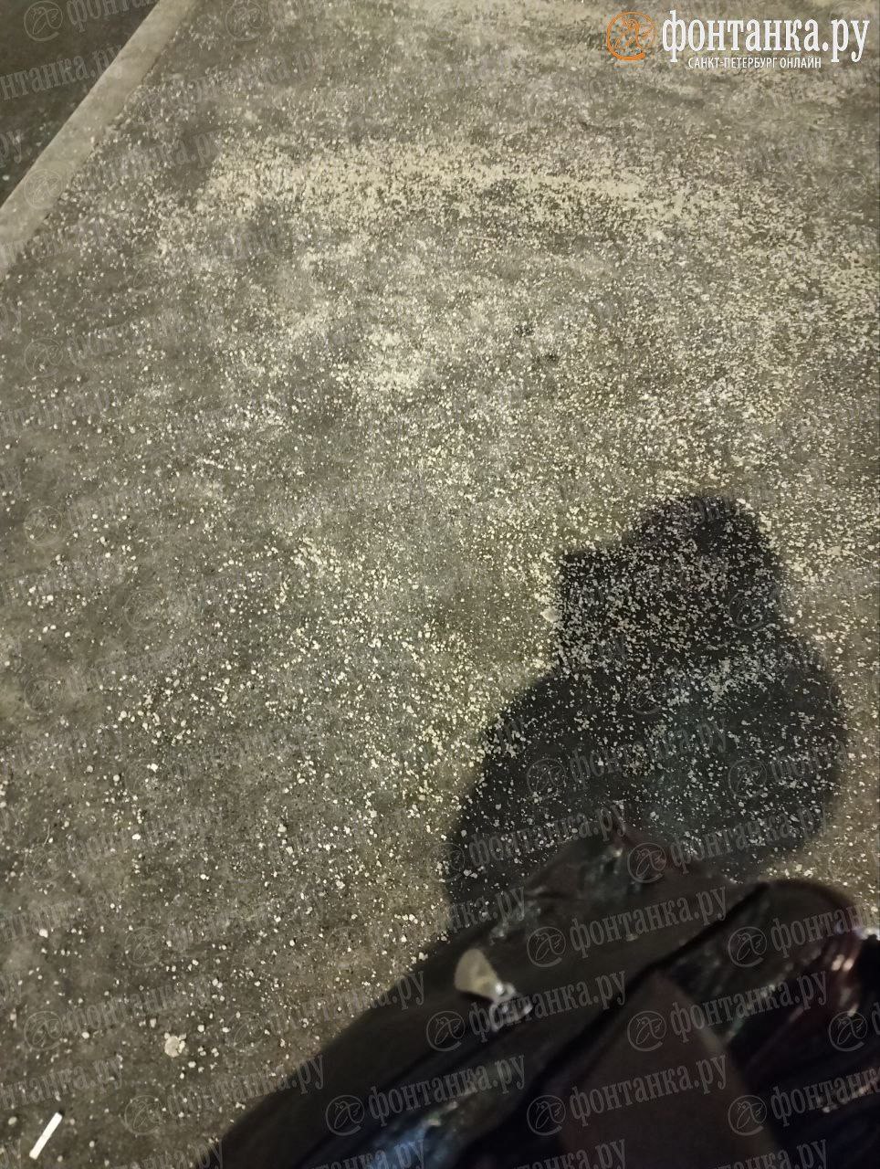 Дороги Петербурга стали скользкими из-за снижения температуры. Коммунальщики обильно посыпают улицы реагентами, в том числе технической солью.