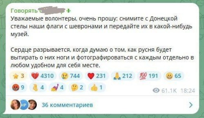 Так то конечно все эти флажки и тризубы ничего хорошего на Донбассе не ждет. Также как и их владельцев. Правильный порядок действий - забирать весь этот бандеровский мусор с собой и валить с Донбасса. Конец все равно один - Украины на Донбассе не будет.