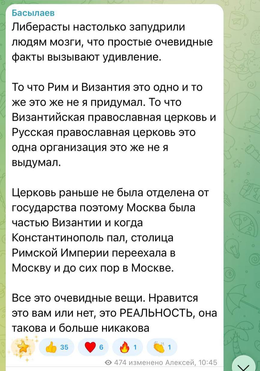 И Басылаев делает то, чего так не хватает: возвращает нормальный, исторически честный взгляд на союз России и тюркских народов. А также обращая внимание на то, что Турция на роль лидера тюркского мира по объективным причинам претендовать не может.
