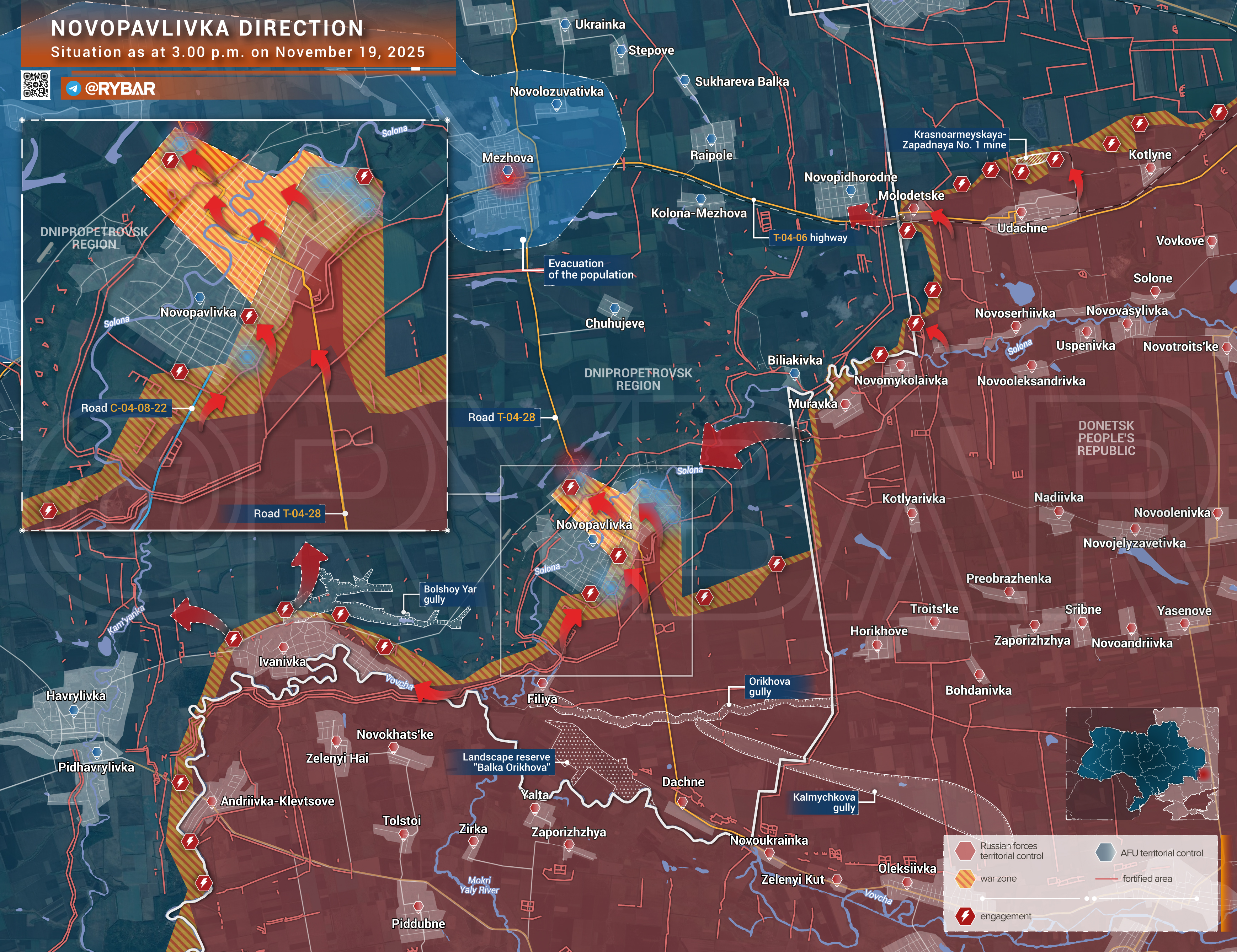 Онлайн-карты доступны по подписке на map.rybar.ru