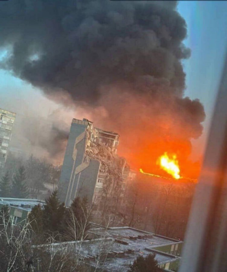 Утром в Тернополе произошло поражение объектов радиозавода «Орион», расположенного на восточной окраине города. В результате инцидента на предприятии возник масштабный пожар. Также повреждения от криворукого ППО пострадало жилое здание на улице Василя Стуса рядом с радиозаводом (оно на фото, завод полыхает вдалеке, справа на фото).