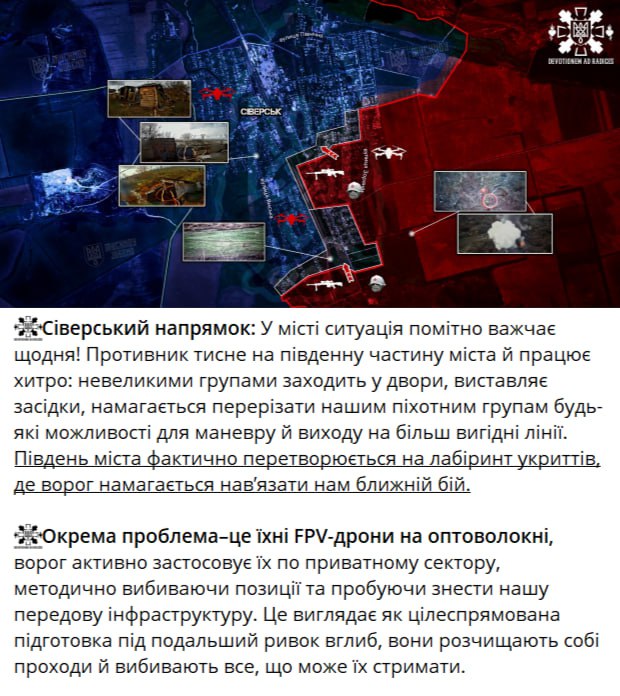 Отдельная проблема для ВСУ — это FPV-дроны, которые методично выбивают позиции ВСУ для подготовки к дальнейшему рывку в центр города.