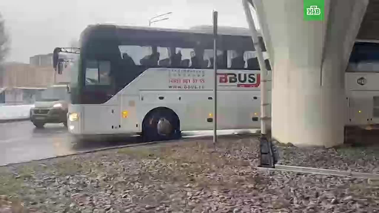 Утром на съезде с ЗСД на Богатырский проспект случилось ДТП с автобусом. Проезд оказался заблокирован.