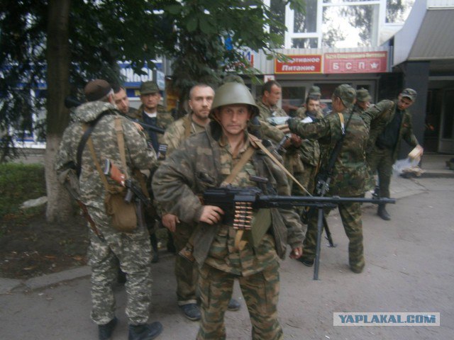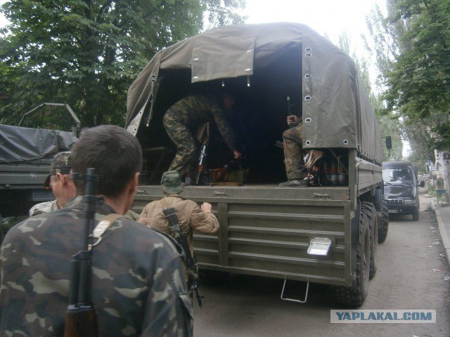 По случаю освобождения Ямполя будет уместно вспомнить тех, кто сражался за него летом 2014 года. На фото сделанных в Славянске 21 июня 2014 года бойцы народного ополчения Донбасса, которые ночью вышли из под Ямполя собираются на позиции.