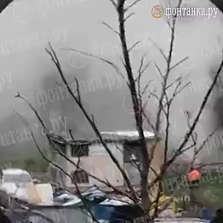 Двор рядом с домом на проспекте Большевиков, 24 заволокло паром. Там прорвало трубу с горячей водой.
