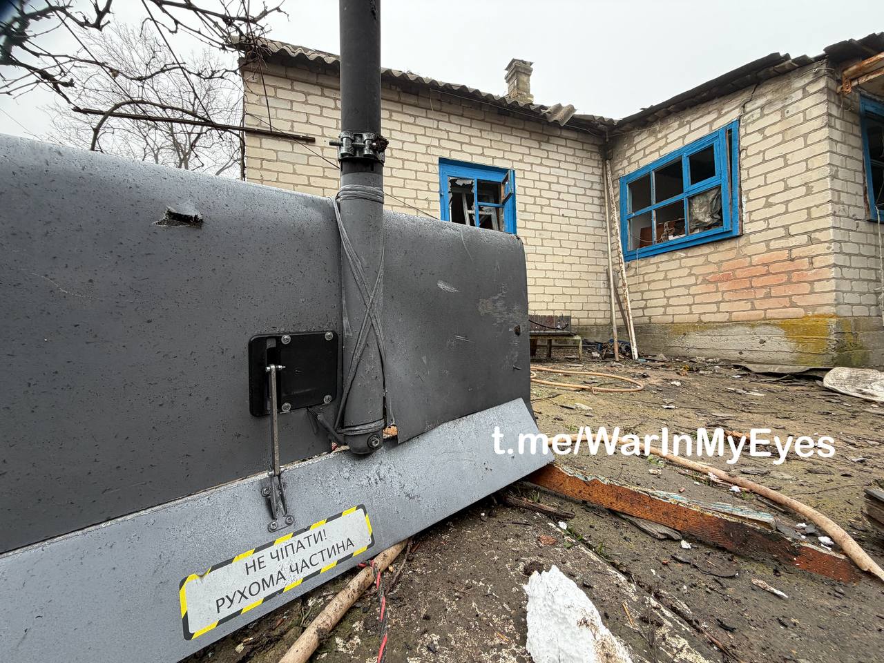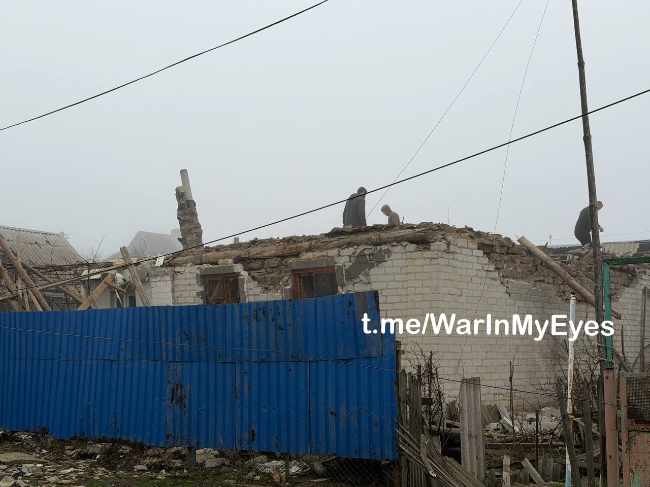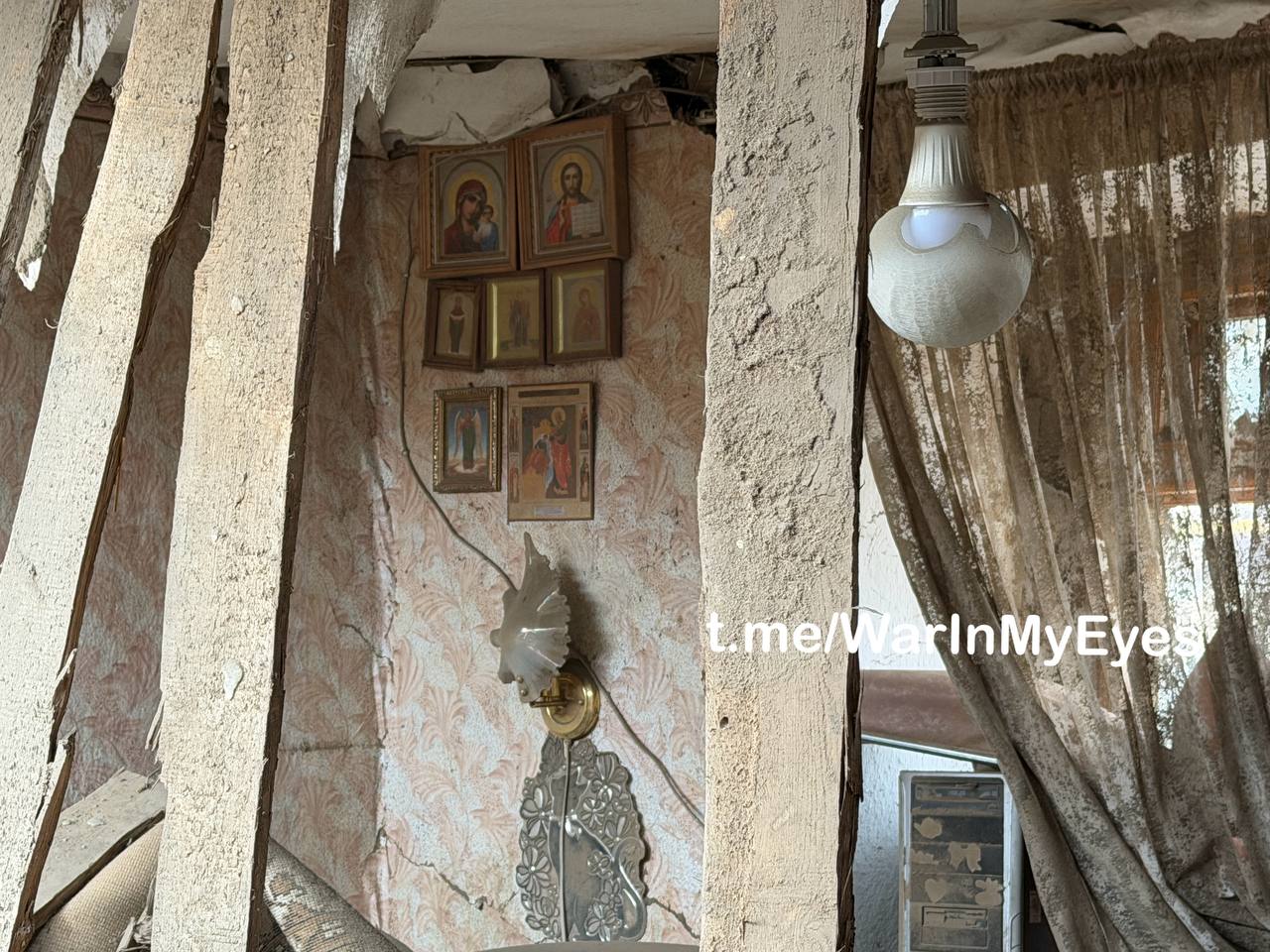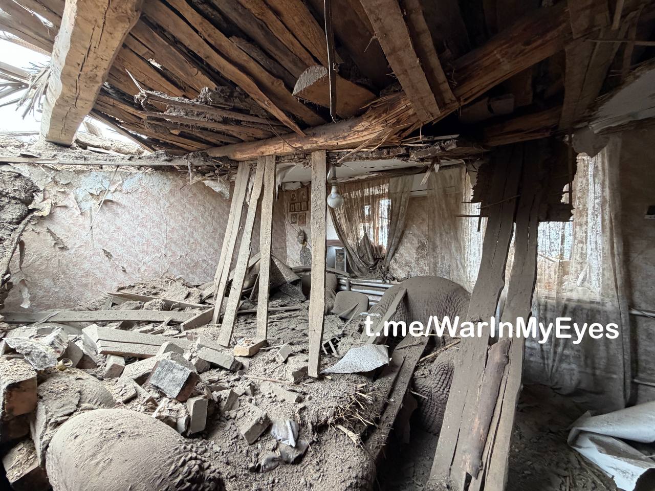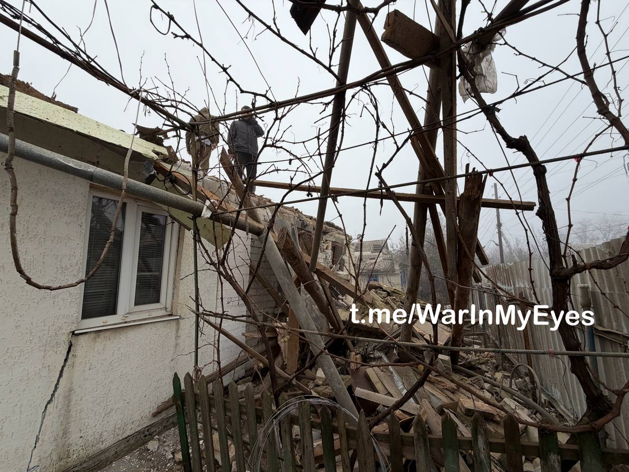 Последствия прилета ударного дрона FP-2 ( Чехия ) в частный жилой дом в Докучаевске сегодня утром