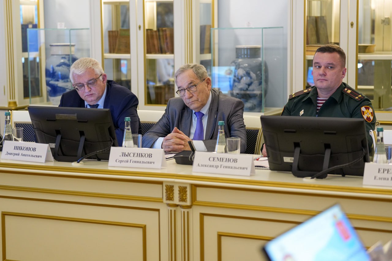 В Мариинском дворце состоялся круглый стол «Без срока давности: к 80-летию Нюрнбергского судебного процесса над нацистскими преступниками», организованный совместно с Санкт-Петербургской военной академией Росгвардии РФ.