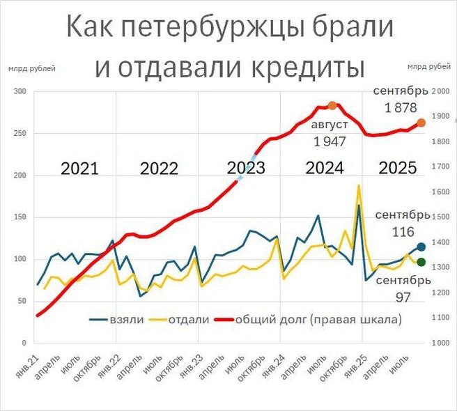 Забавный факт: ровно столько квартирных кредитов скопилось у жителей Петербурга к июлю 2024 года, когда на почве лихорадки перед отменой льгот их набрали все, кто только мог, обновив исторический рекорд.