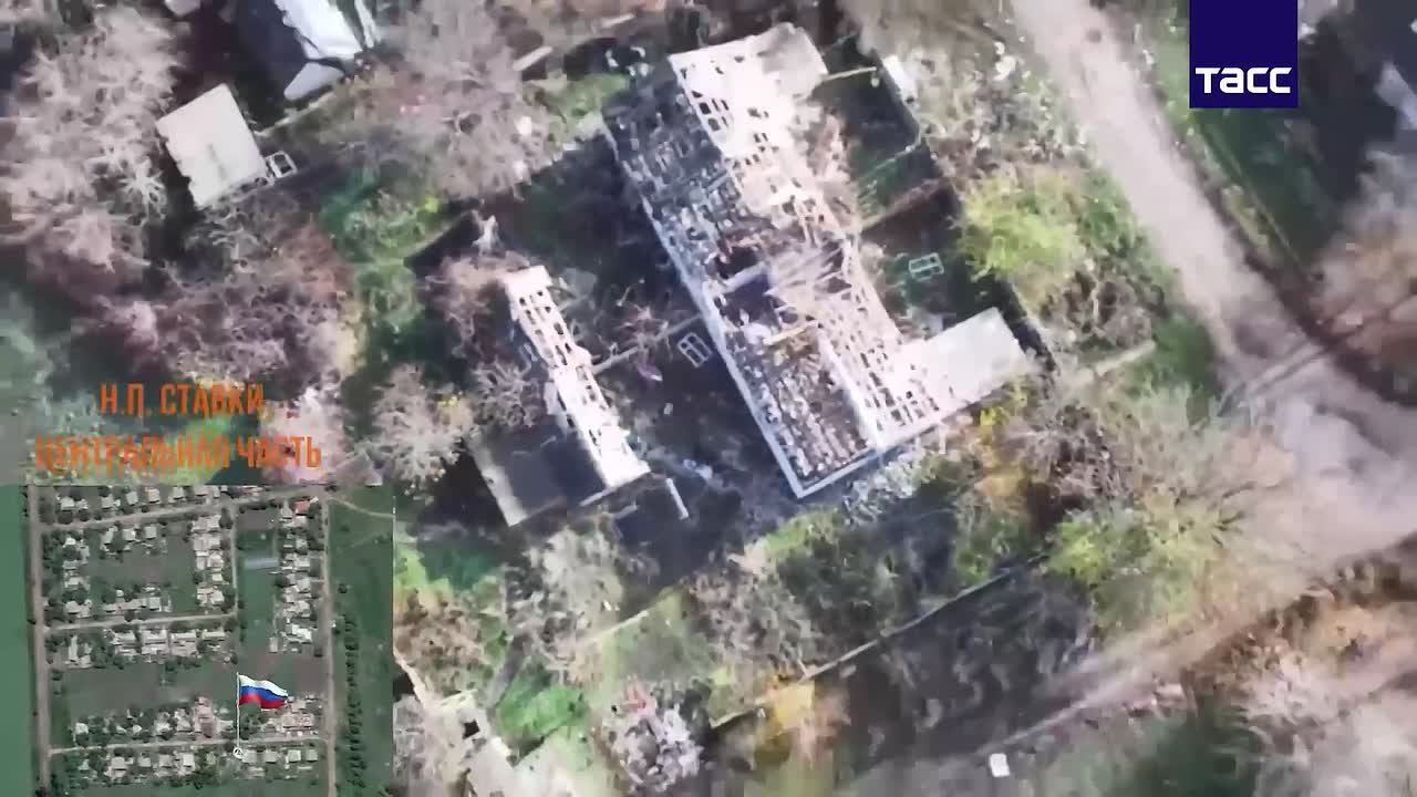 Официально освобожденные сегодня поселки Ставки и Новоселовка в районе Красного Лимана. В поселках подняты российские флаги.