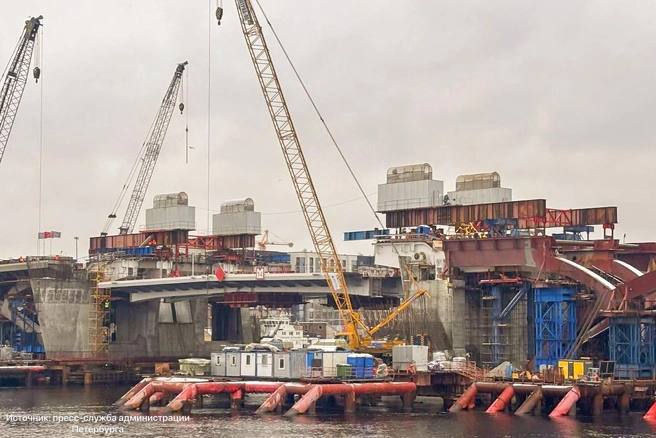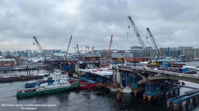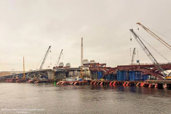 Большому Смоленского мосту начали монтировать двукрылый разводной пролет. Каждое «крыло» весит около 400 тонн.