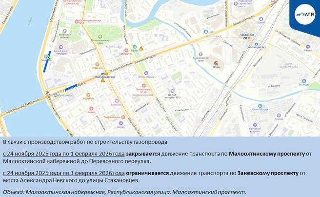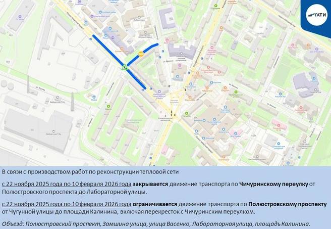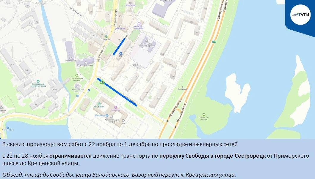 В Калининском, Красногвардейском, Курортном и Петроградском районах из-за работ на коммуникациях ограничат движение до февраля.
