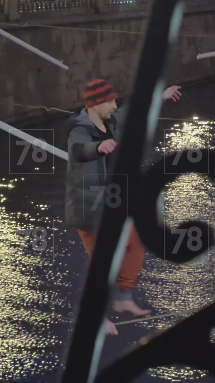 Над ледяной водой: эквилибрист устроил шоу в центре Петербурга