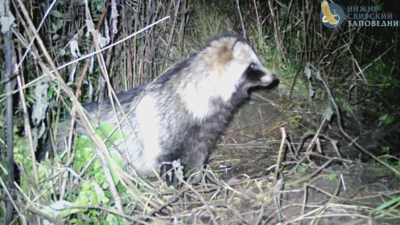 В фотоловушку Нижне-Свирского заповедника попала енотовидная собака. Пока остальные животные рыскают в поисках еды, наш гость не спеша прогуливается по территории заповедника.