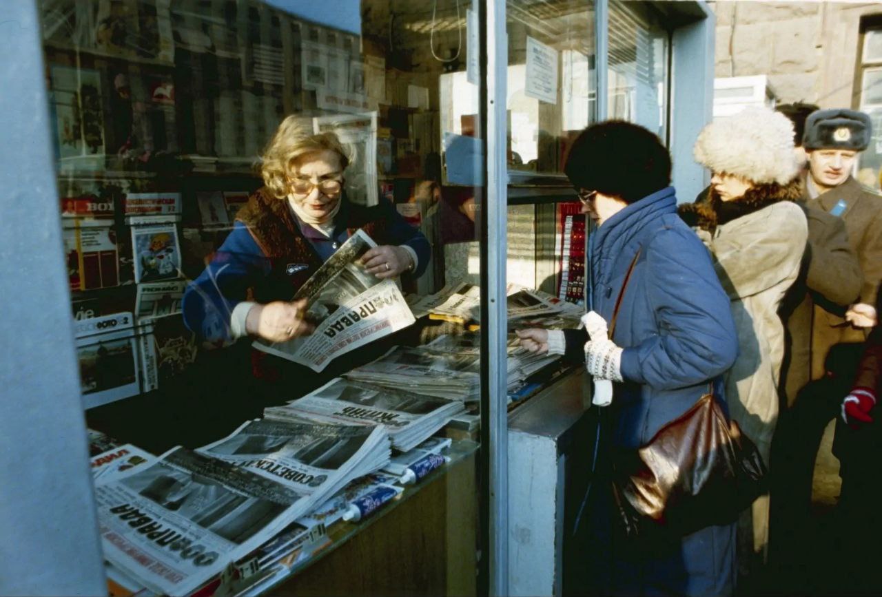 На фото - очередь в «Союзпечать». Москва. 1986 год.
