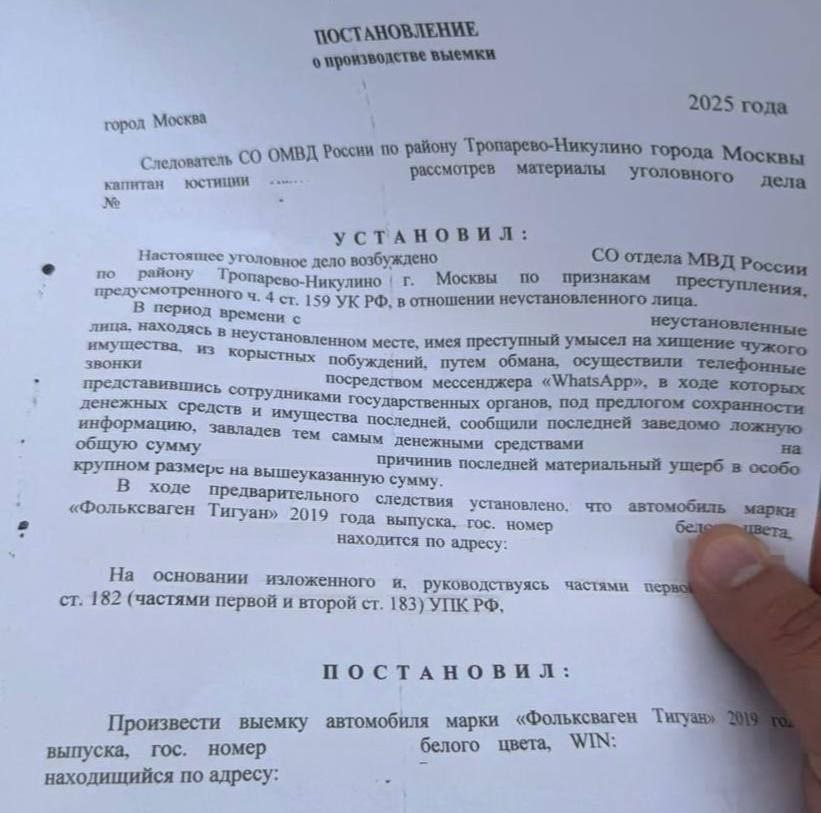 Житель столицы купил у пожилой женщины Volkswagen Tiguan за 1,8 миллионов рублей.
