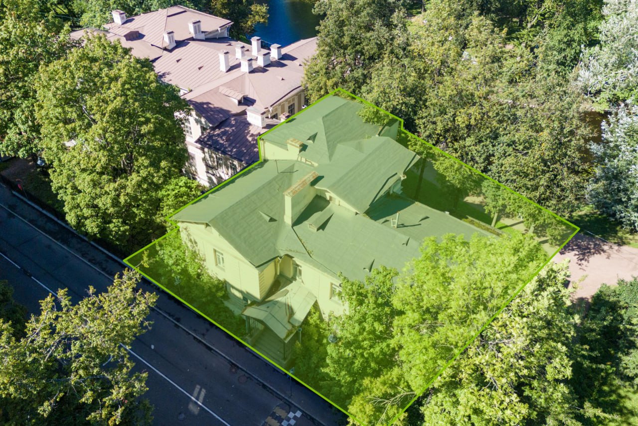 Комплекс площадью 837 кв. метров на Аптекарском острове выставлен на торги сегодня. Здание соседствует с дачей Громова, признанной объектом культурного наследия.