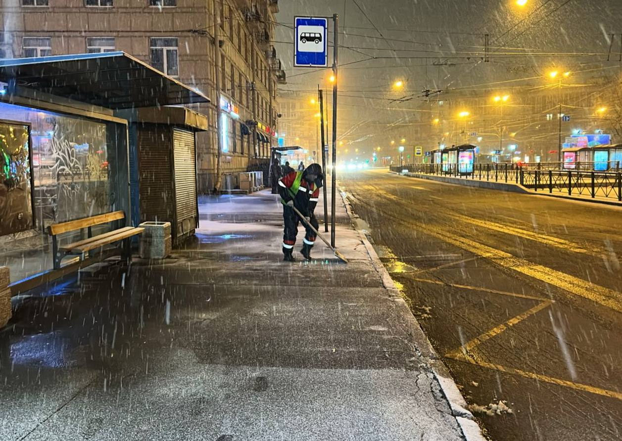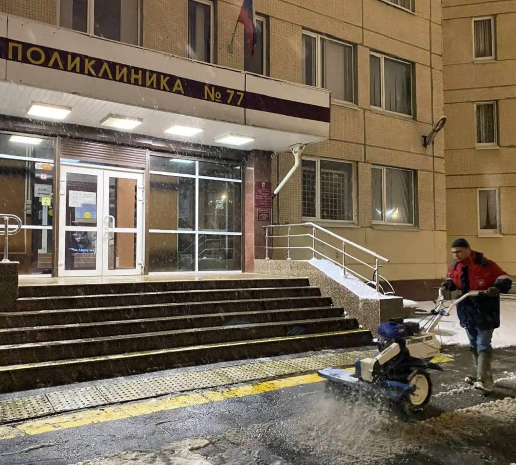 В ночную смену работали 690 единиц техники, из них 352 — на тротуарах, 270 — на проезжей части. В день на уборку улиц и тротуаров города вышло 810 единиц техники, 1071 работник ручного труда.