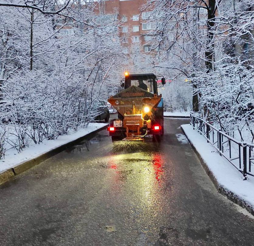 К сегодняшнему снегопаду все уборочные службы города были готовы — в ночную смену дорожные предприятия обеспечили превентивную обработку противогололедными материалами дорожного полотна. Это позволит предупредить появление гололеда, в связи с «температурными качелями», которые ждут нас в ближайшие дни.