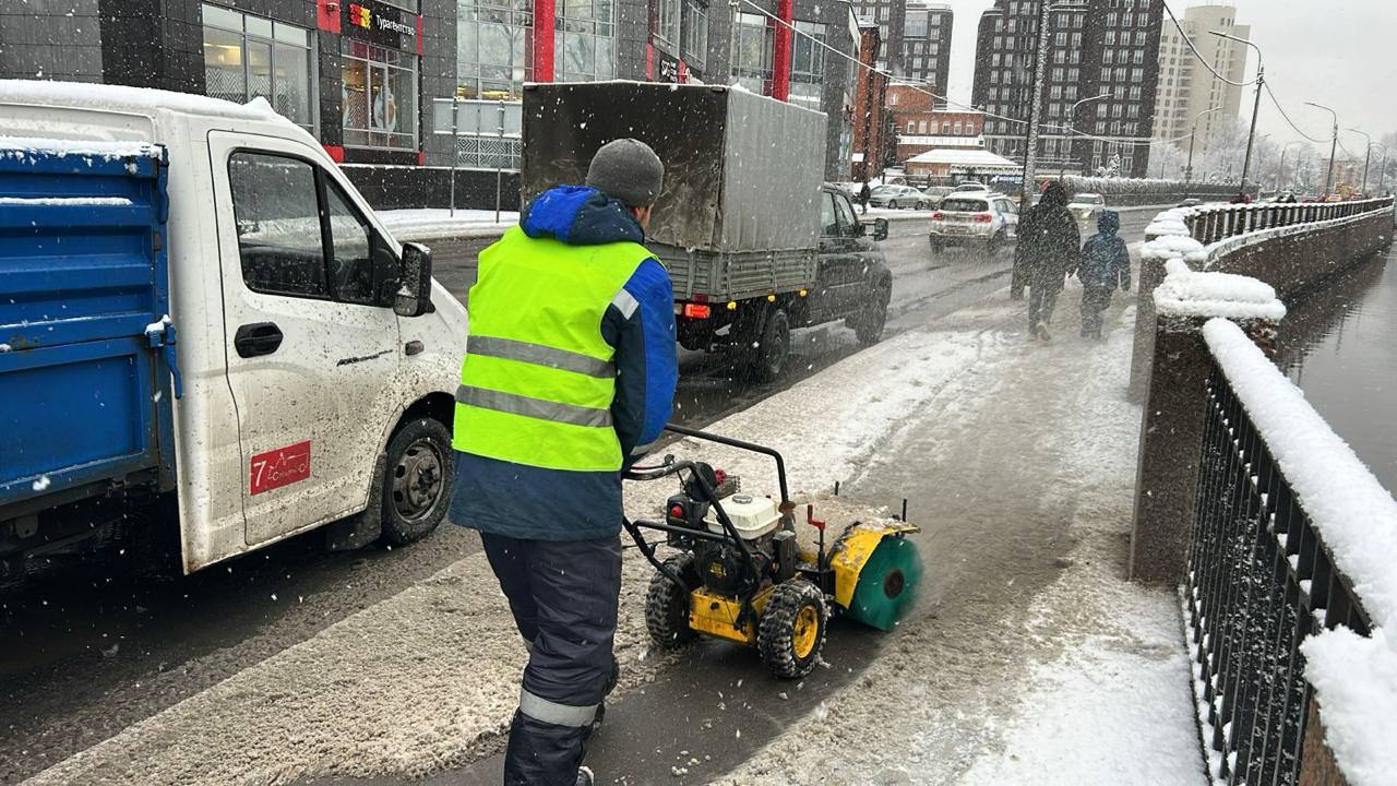 С раннего утра во дворах Петербурга трудятся 3615 дворников. Для них основная задача — прочистить подходы к социальным учреждениям, контейнерным площадкам.