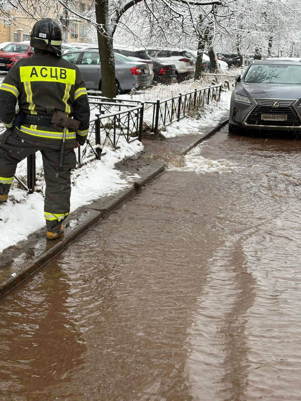 «Водоканал» устранил разлив в Кировском районе. Утром на Межевом канале прорвало трубу с холодной водой.