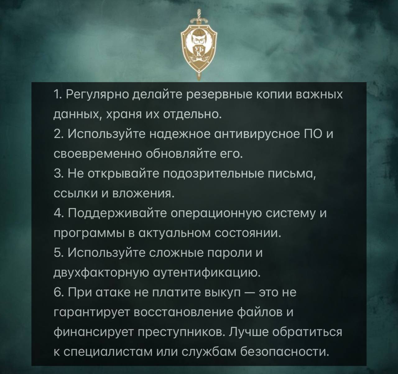 Рекомендации для защиты от шифровальщиков: