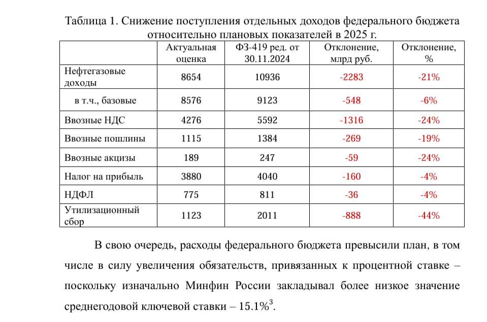 — Итоги 2025 года отклоняются от первоначальных планов: ожидается структурный первичный дефицит на уровне 1,3% ВВП.
