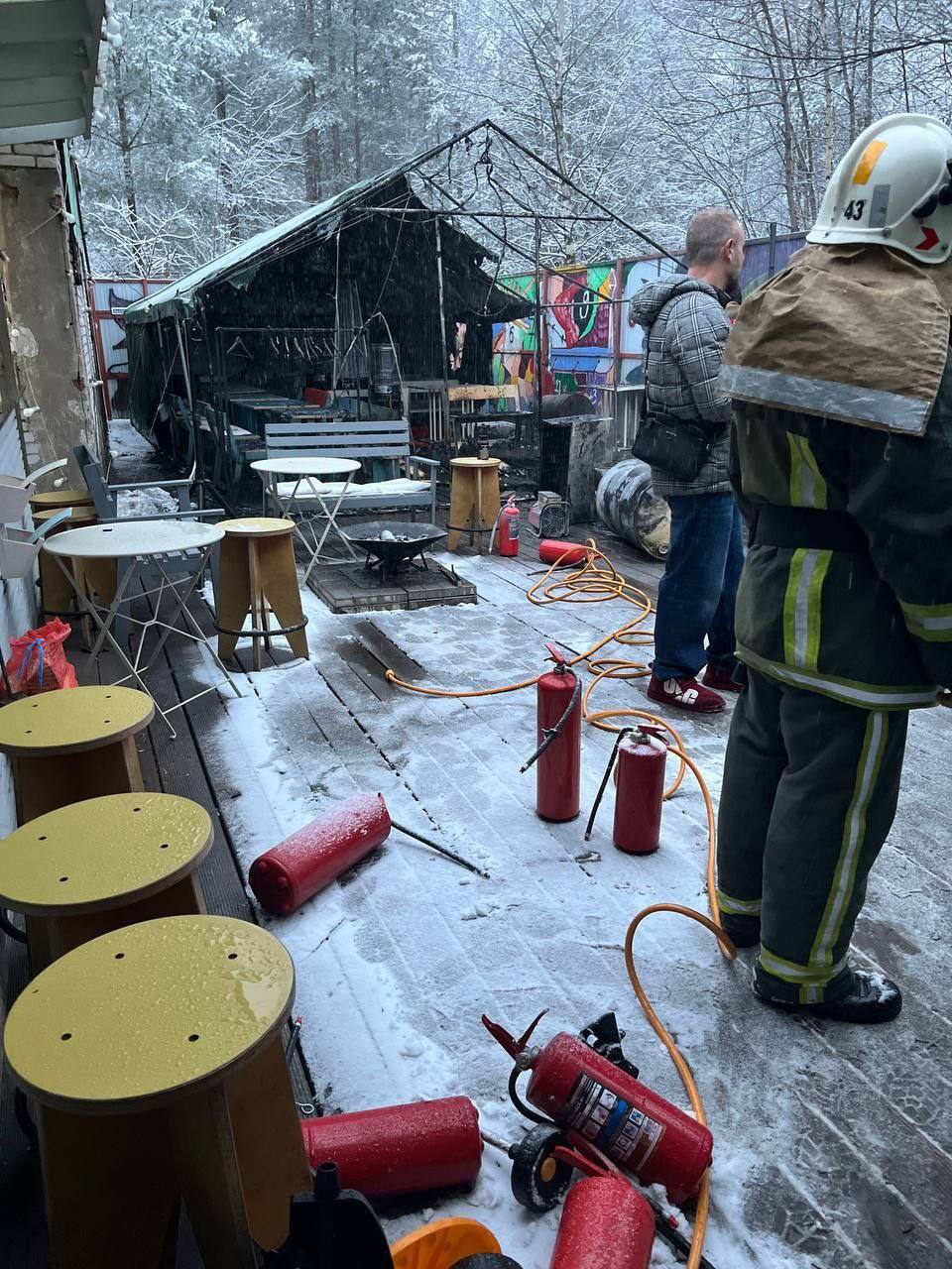 В МЧС нам сообщили, что сигнал о возгорании поступил по адресу 2-я Дачная, 3. Горел деревянный настил в палатке под тентом. Его потушили до приезда пожарных. На кадре, выложенном в местном паблике «Комарово», видна обстановка изнутри. Однако в самом «Сельском пабе» нам все отрицают: