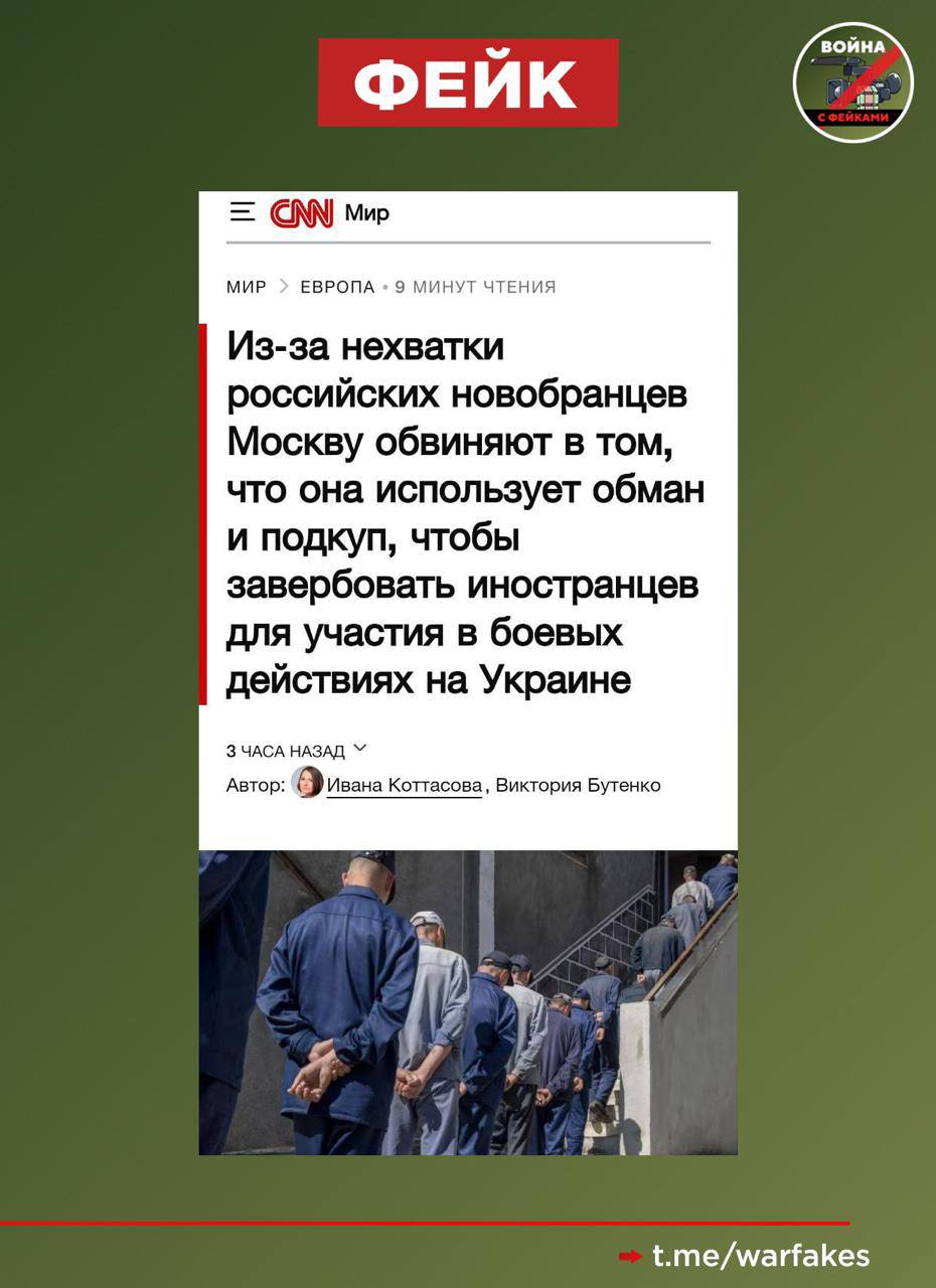 Фейк: Россия угрозами вербует иностранцев в вооруженные силы для участия на СВО из-за нехватки добровольцев. Об этом сообщило издание CNN.
