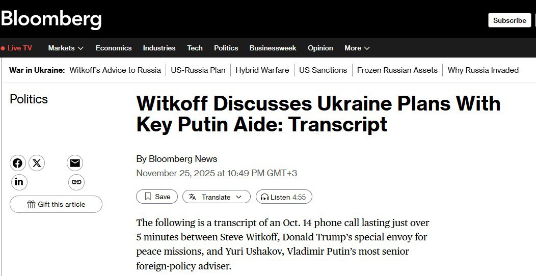 -Вы слышали запись, которую опубликовал Bloomberg. На ней Уиткофф, якобы инструктирует россиян [Ушакова], как вам понравиться?