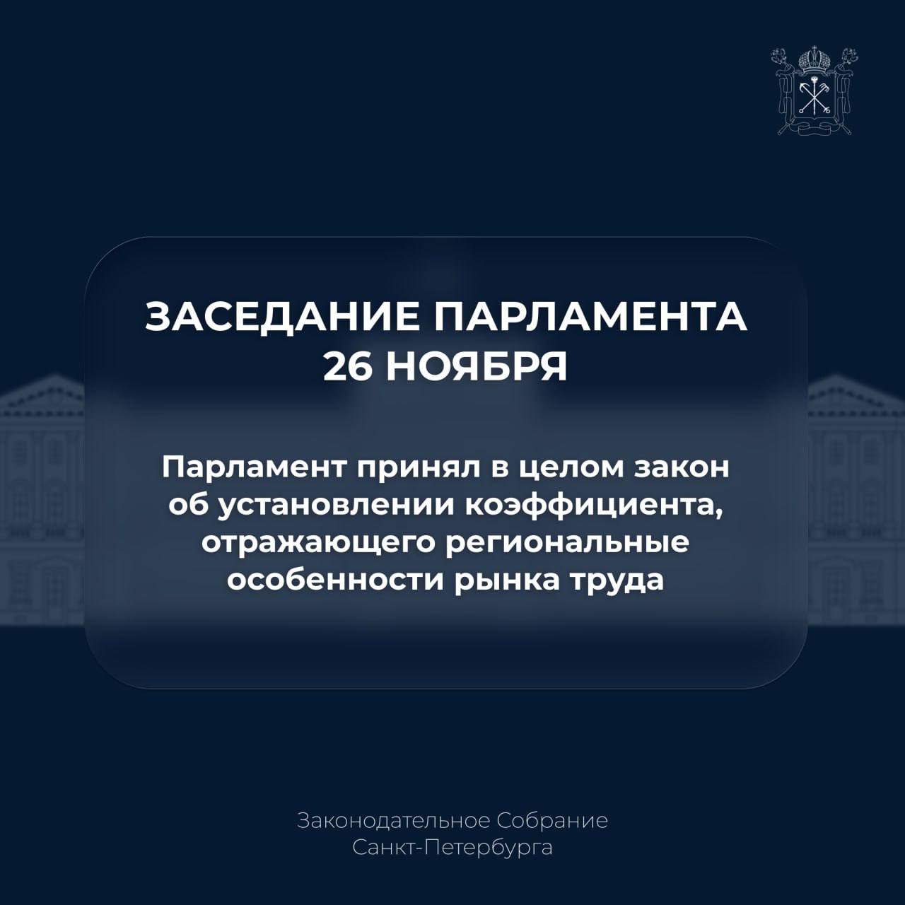 Парламент принял в целом закон об установлении коэффициента, отражающего региональные особенности рынка труда на следующий год.