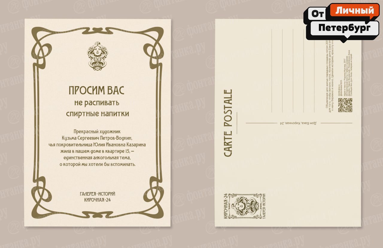 А еще жильцы показали нам одну из 12 открыток, которые они подготовили для гостей. Вырученные средства пойдут на дом. Например, в нём планируют восстановить утраченные витражи, рассказала нам председательница Совета Дома Бака Марина Жукова.
