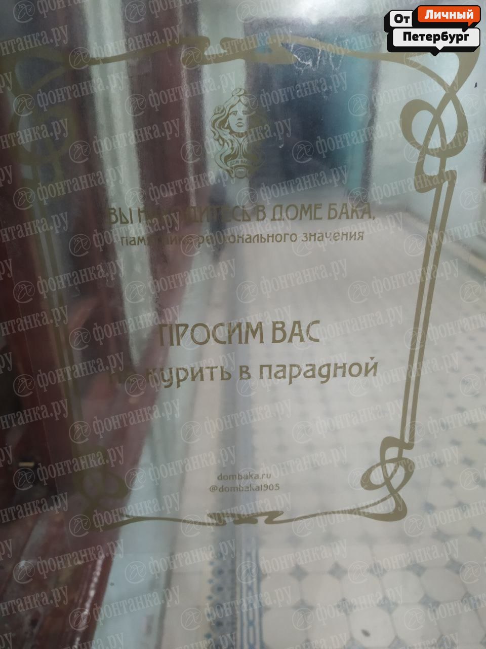 В Доме Бака обновили объявления с просьбами не курить и не выходить на крышу: