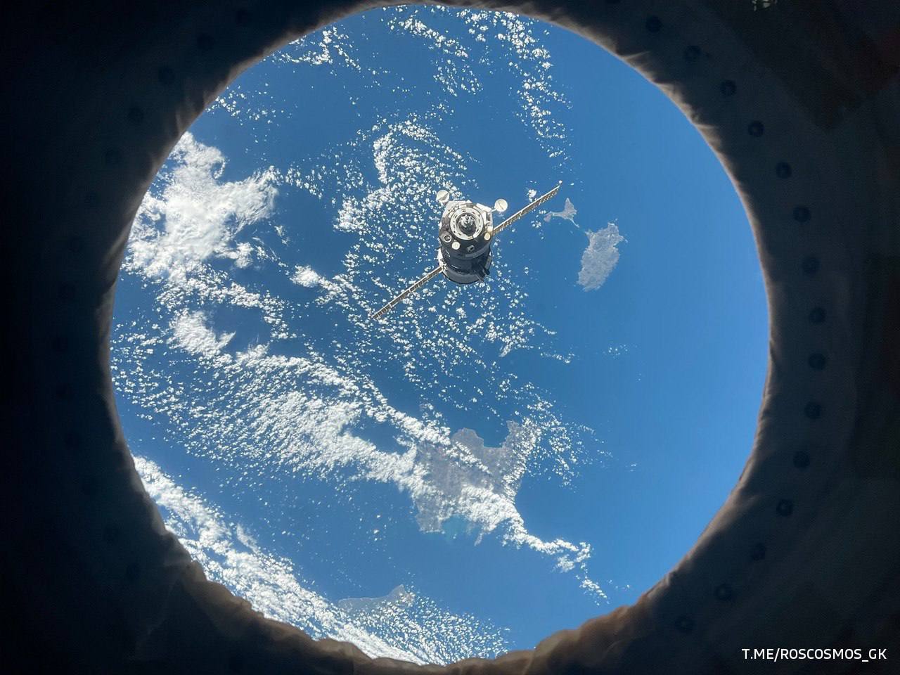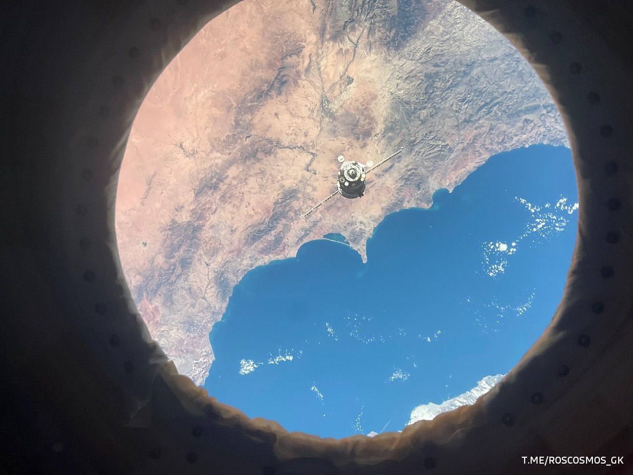 Русский экипаж на подлёте к МКС шлёт привет с земной орбиты. На фотографии — космонавт Олег Платонов на борту корабля «Союз МС-28»