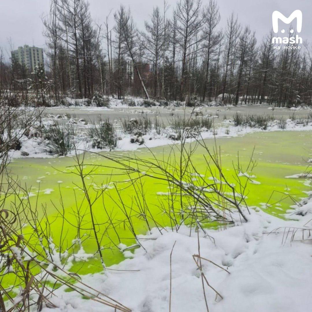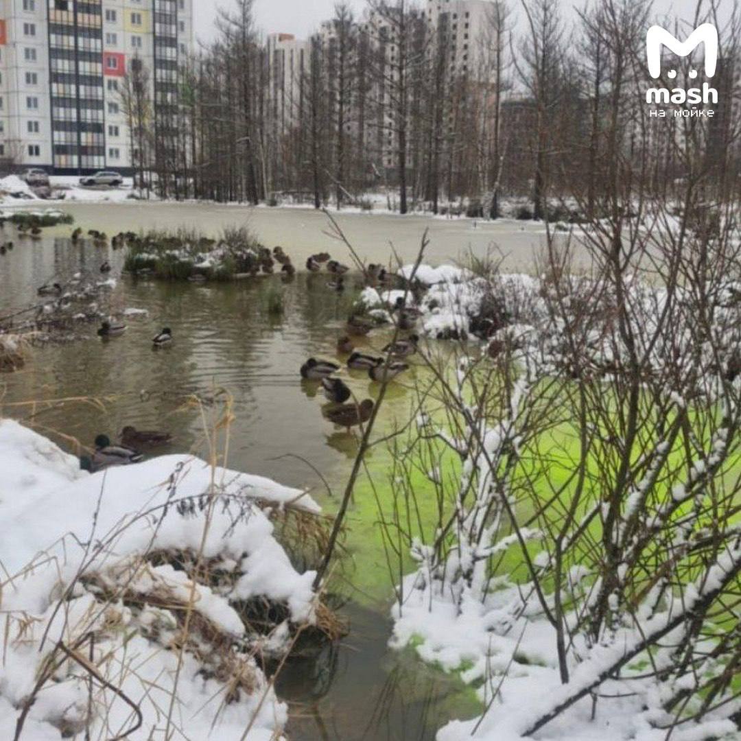 Гринч начал своё дело раньше положенного — расхищает кайф зимних утех и заливает непонятной неоновой жидкостью озеро с утками во Всеволожске.