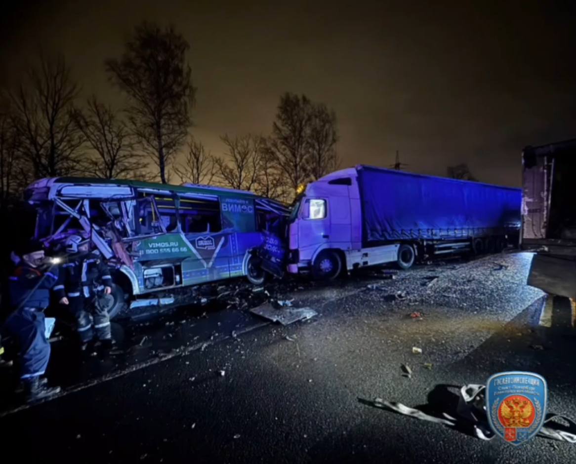 ДТП с автобусом и «Камазом» произошло на Московском шоссе в Пушкинском районе. Двое погибли.