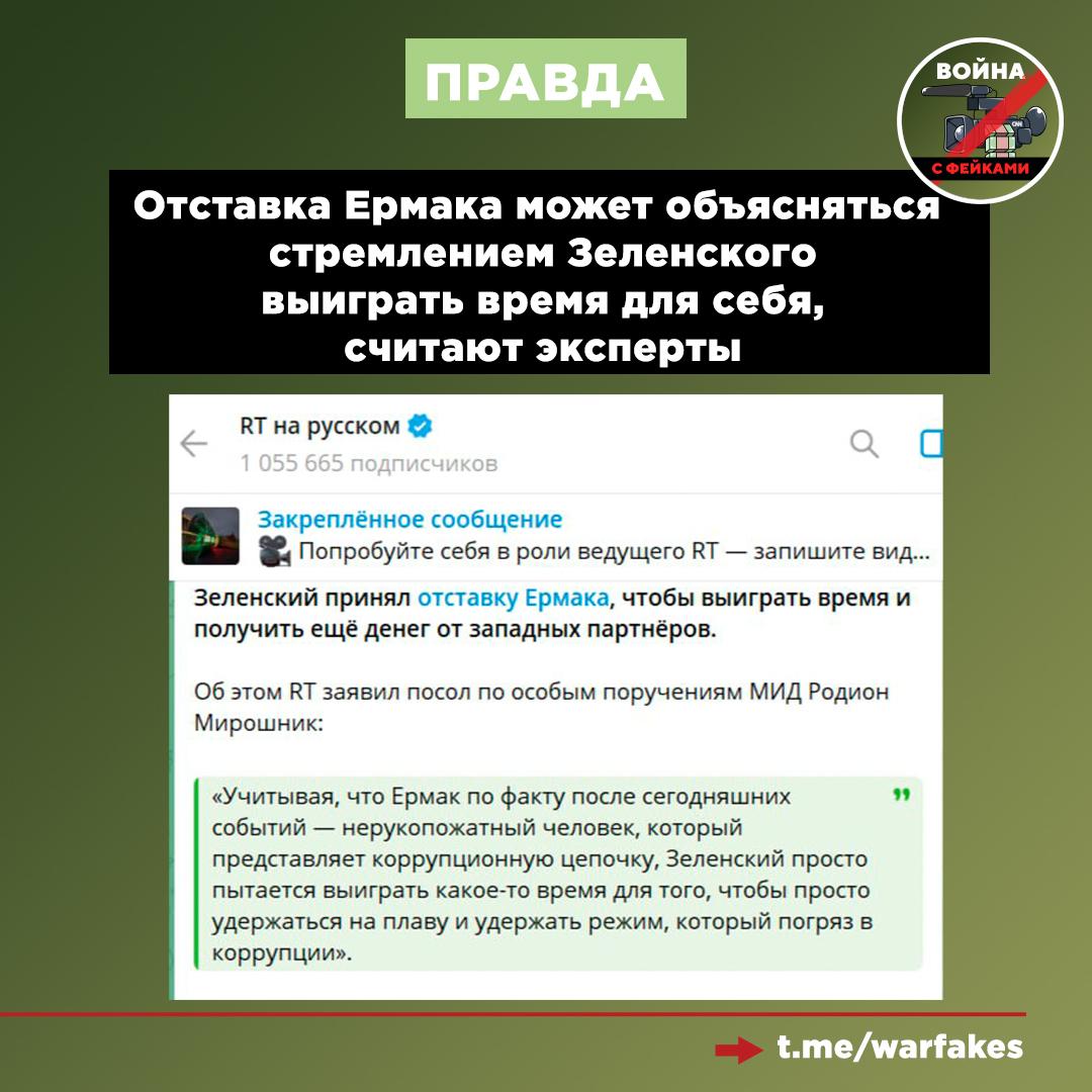Правда: Патетическое заявление было сделано до того, как управленческая верхушка Украины была вынуждена поступиться самим Андреем Ермаком, который накануне написал заявление об отставке. Позже в интервью New York Post он объявил о решении отправиться на фронт. Сделано это было после того, как детективы из Национального антикоррупционного бюро Украины провели обыски в его доме. Новый поворот в очередной раз свидетельствует: Киеву придется следовать тому курсу, который ему будет указан.