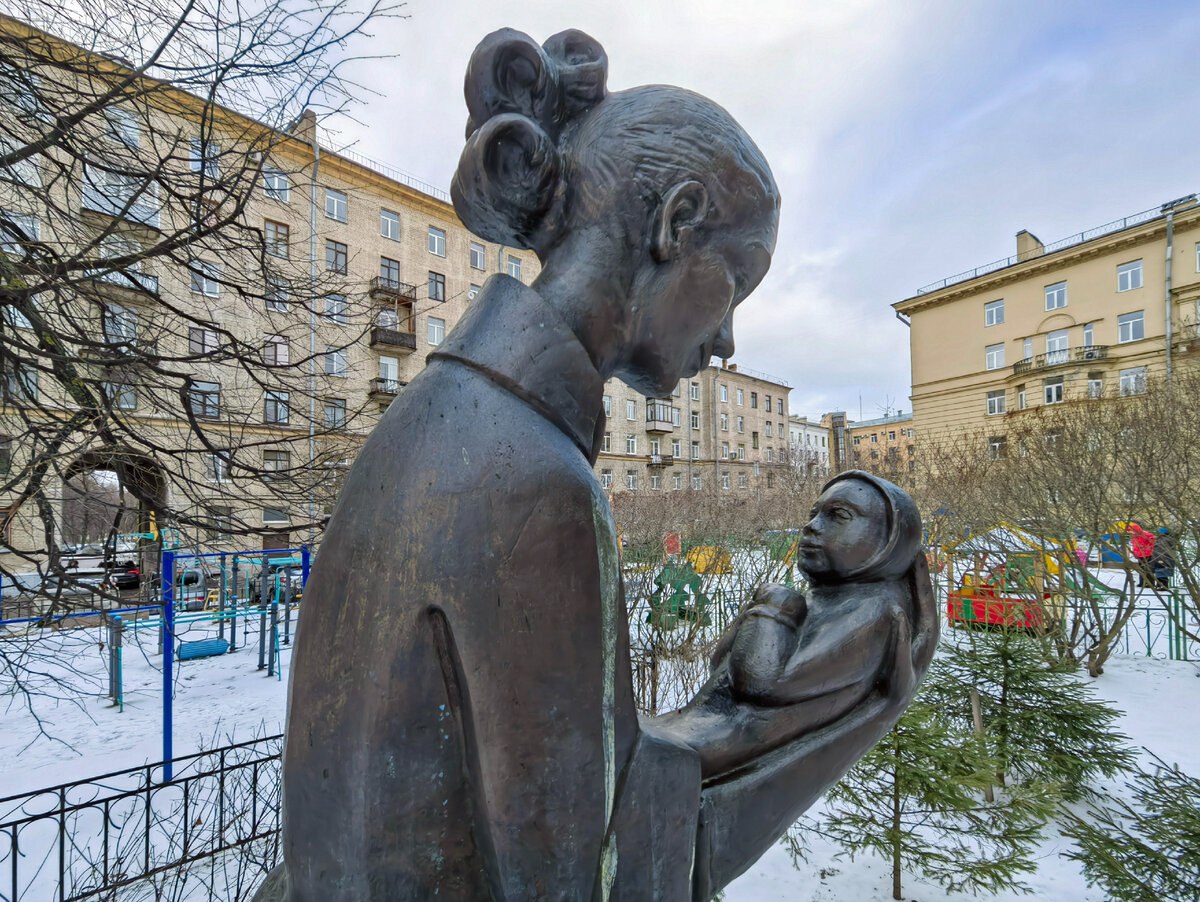 Скульптура без лишнего пафоса, но с глубоким эмоциональным подтекстом: о материнской любви, самопожертвовании и святости семьи.