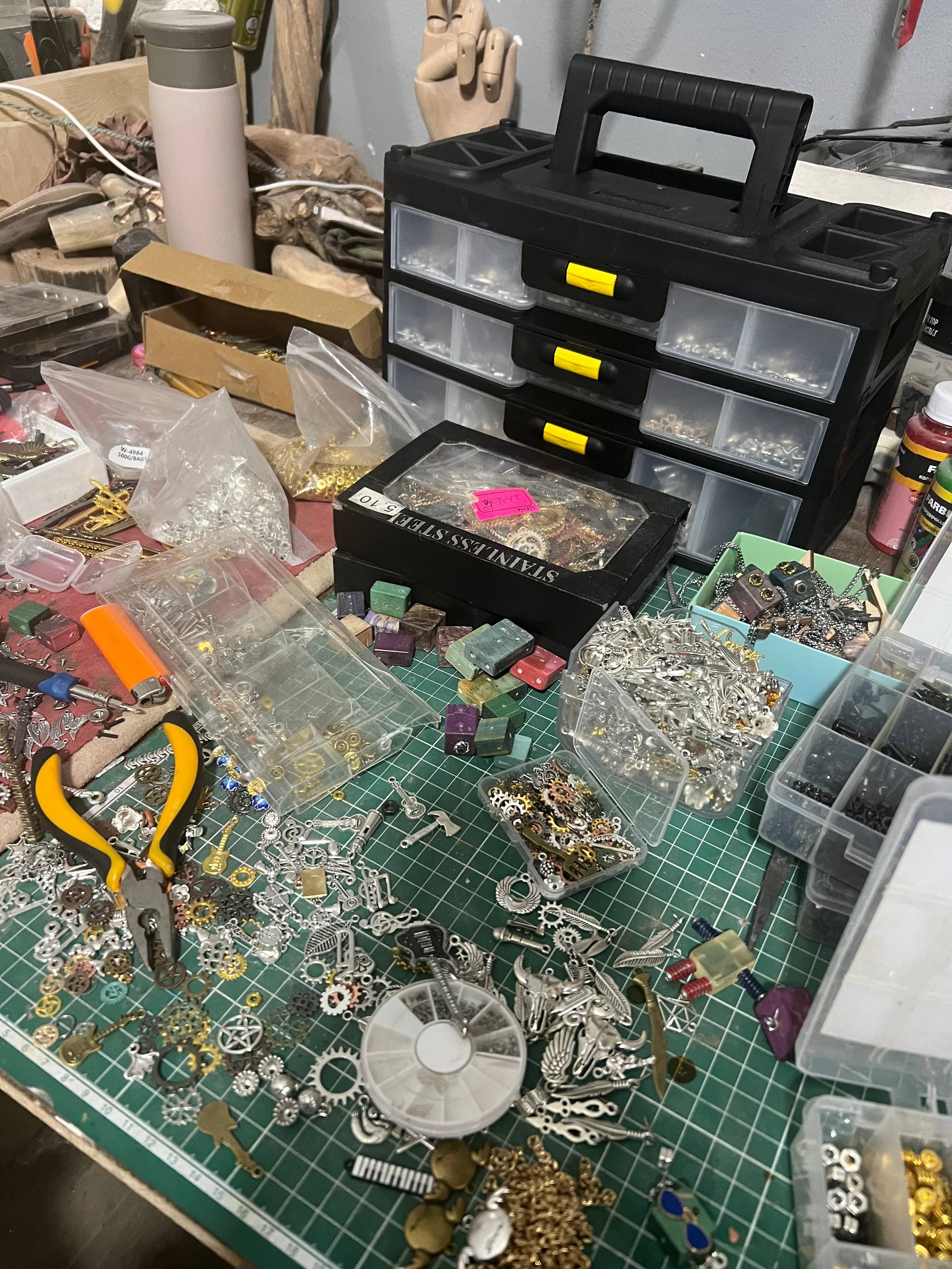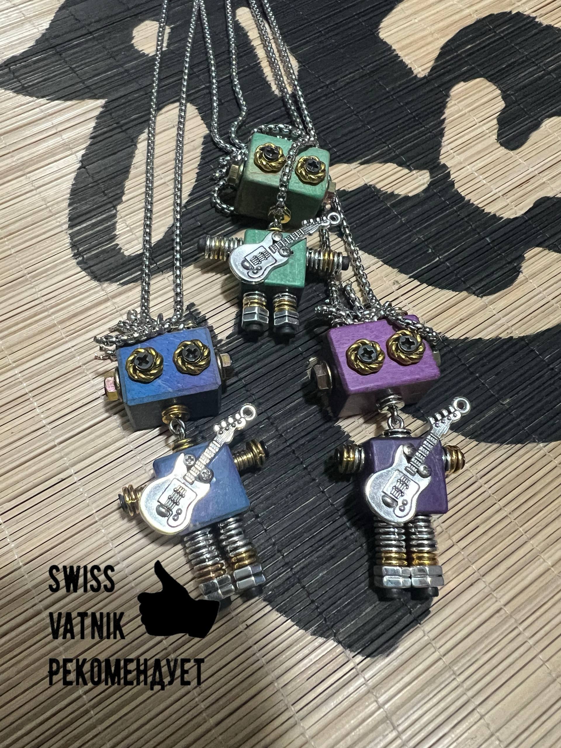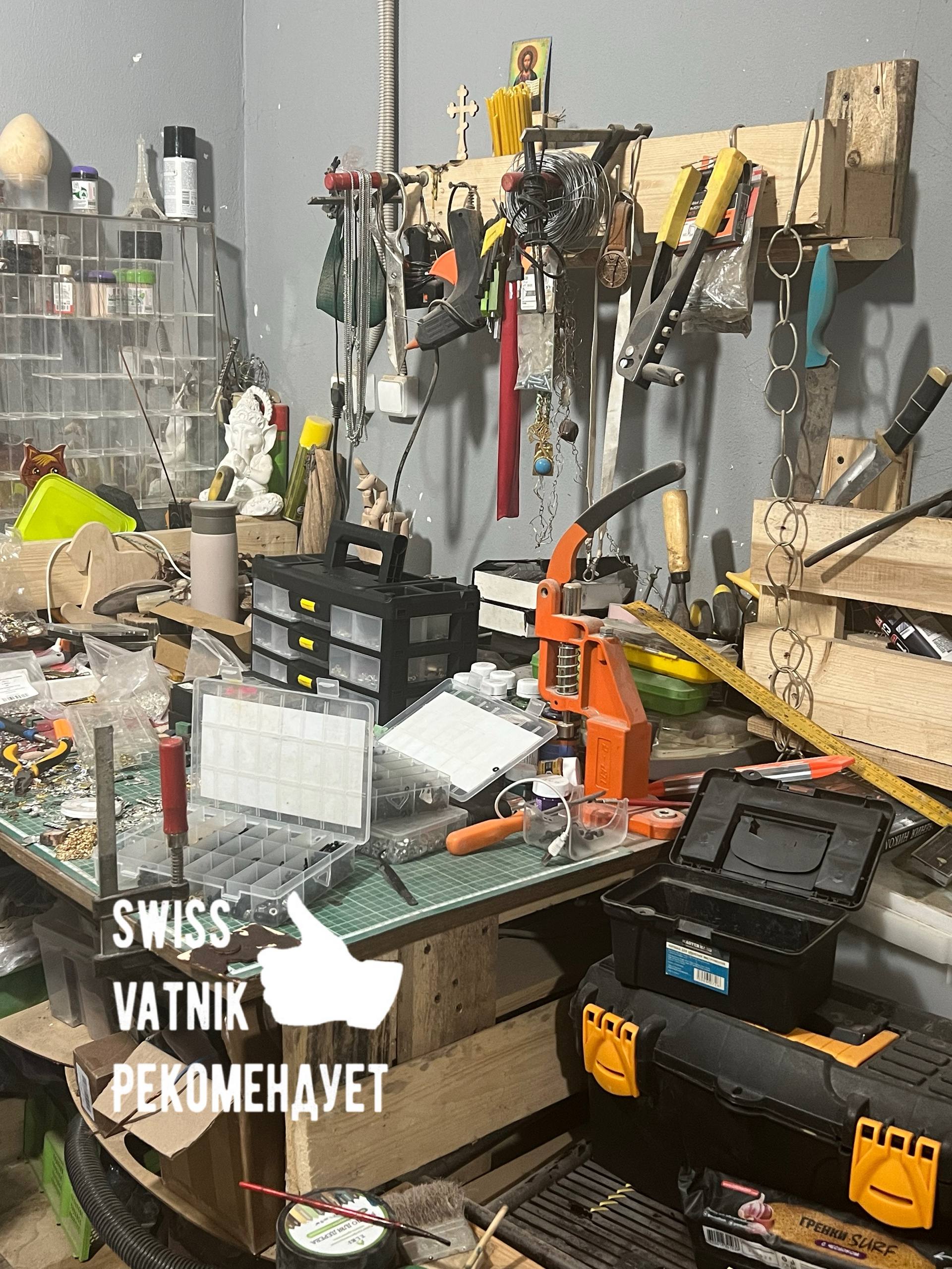 Знакомьтесь это Александр! Он художник и ювелир, а еще добрый человек, помогающий кошачьим приютам, отдавая бОльшую часть прибыли своей мастерской на поддержку бездомных животных. Я съездила в мастерскую Александра, чтобы своими глазами увидеть как из небольших деталей: кусочков дерева, полудрагоценных камней, цепочек, фурнитуры и фантазии художника, собираются необычные куколки-украшения «Рабозя». Первую «Рабозю» SwissVatnik срисовал на шее коллеги журналиста, на одном из международных форумов в Москве. Спросила откуда такое необычное украшение, при этом была абсолютно уверена, что куколка на шее коллеги, из коллекции «Prada» (очень уж похожа!) продававшейся в европейских бутиках итальянского бренда Миуччи Прады пару лет назад. Оказалось куколки не итальянки от модного бренда, это наша отечественная кукла «Рабозя». Коллега дала ссылку на телеграм канал автора украшений и вот я сижу в электричке, по дороге в мастерскую художника. В мастерской засыпала художника вопросами: как придумал свою куклу, знал ли он об итальянских родственницах своей «Рабози», как выбирает наряды и детали для новых куколок, и много другого. Сегодня выкладываю часть сфотографированного в мастерской и конечно делюсь ссылкой на телеграм-канал ювелира. В отличие от конкретной рекламы, которую автор канала всегда подписывает, в данном случае - я хочу помочь Александру найти для его кукол новых хозяев. Потому как я знаю, что бОльшая часть вырученных денег уйдет на поддержку братьев наших меньших. Здесь фото из мастерской, а ниже выложу фотографии готовых изделий.