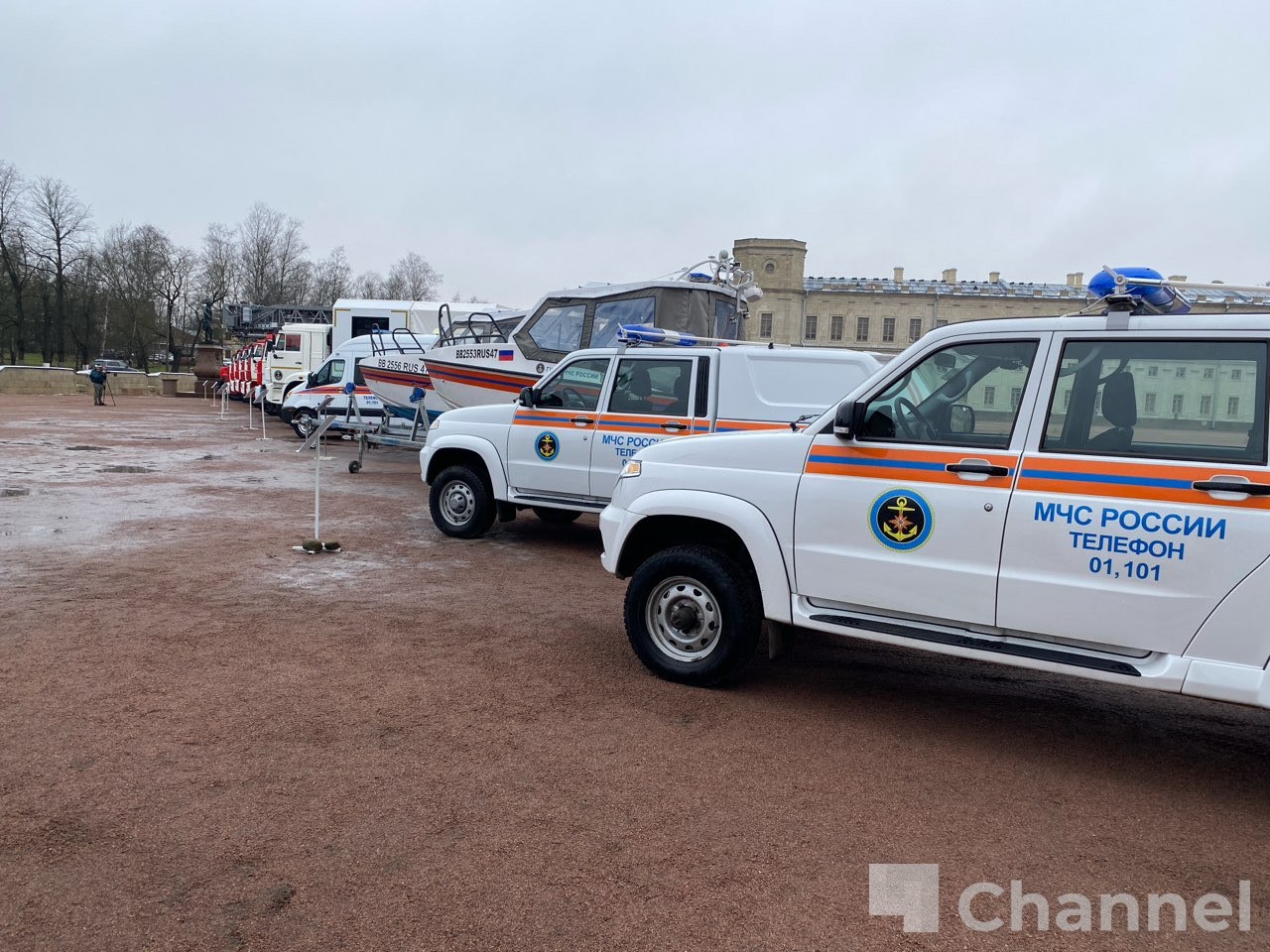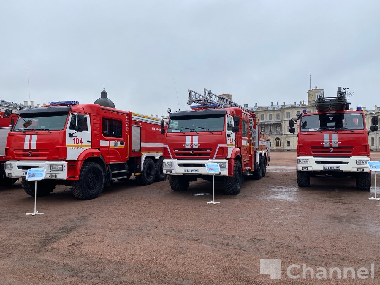 В Гатчине губернатор Ленинградской области Александр Дрозденко и глава МЧС России Александр Куренков осмотрели новую пожарно-спасательную технику, которая поступит в подразделения ГКУ "Леноблпожспас" и федеральной противопожарной службы МЧС по 47 региону.
